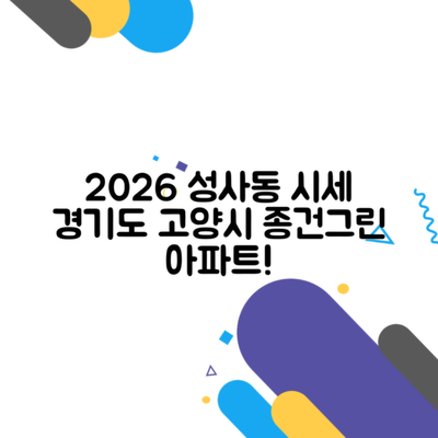 2026년 1월 경기도 고양시 덕양구 성사동 종건그린 아파트의 시세를 정확히 예측하기 위해서는 몇 가지 중요한 요인을 고려해야 합니다. 아래의 단계별 가이드를 통해 필요한 정보를 검토해보세요.